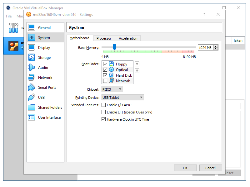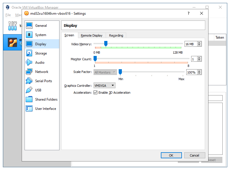 If you click con About VirtualBox under the Help Menu, you will see the version of the VirtualBox you are running. The screenshots here are from VirtualBox-6.1.6. If you are using a newer version of VirtualBox, your screens may look different and some of the default values may be different. Step 1: Import Virtual ApplianceClick on the Import button and your screen will look like the following:Click on the yellow folder icon on the right to select a virtual appliance. Select the "awsvnc32xu16047-vbox6140-f1.ova" file you have just downloaded and your screen will look like the following (please note that the photo is a bit old and the strings on the screen will not match what you see and that's okay)): On the screen shown above, it's important that you check the "Import hard drives as DVI" checkbox. Click on the Import button at the bottom and it will start importing the virtual appliance. It can take a few minutes to finish importing. When you are done, your screen should look like the following (if the right side looks different, it's perfectly fine): The most important two buttons on the right are the Settings button and the Start button. The most important setting is the setting for the Display. For now, just click on the Settings button and you will get a popup window. In the popup window, click on Display on the left and you will see a screen that looks like the following for the Display setting: Don't click on anything! I just want you to see the checkbox that's labeled, "Enable 3D Acceleration". This is a very important checkbox! In the above screenshot, it's showing that this checkbox is currently checked. If things go wrong, you might want to come back here and uncheck this checkbox and try again! For now, keep it checked because it will make your virtual machine run faster. If your host machine is running Mac OS X, another important setting in the above screen is the amount of video memory your virtual machine gets. In the above screenshot, it's showing that your virtual machine will be given 16 MB of video memory. If things go wrong, you might want to come back here and set the video memory to 128 MB and try again. Another important setting is the setting for the "base memory". Click on System on the left and you will see a screen that looks like the following for the System setting: Check the Enable I/O APIC checkbox and don't click on anything for now! (Please note that if it turns out that your hardware is incompatible with Enable I/O APIC, you should uncheck that checkbox.) You should see that "Base Memory" is set at 1024MB (i.e., 1GB) by default. You should run as few things inside your virtual machine as possible because things are slower when you run them inside a virtual machine. For example, if you want to use a web browser, it's best that you run your web browser on your host machine and not inside the virtual machine (unless there is a good reason for it). If you must run many applications inside your virtual machine, you can give your virtual machine more memory by changing the Base Memory setting here. Please understand that the more memory you give to your virtual machine, the less memory your host machine will be left with! So, you need to first figure out how much memory your host machine has. I think it's a good rule that Base Memory should never exceed 1/3 of the total amount of memory of your host machine. For now, keep the Base Memory at 1024MB. Now click on the OK button to save your setting and go back to the start screen and proceed to start your virtual machine. UTM on Mac with Apple SiliconThanks to Sricharan Koride (CS 402 in Spring 2025) for starting this off! These are the steps to install our virtual appliance into UTM on a Mac with Apple silicon: